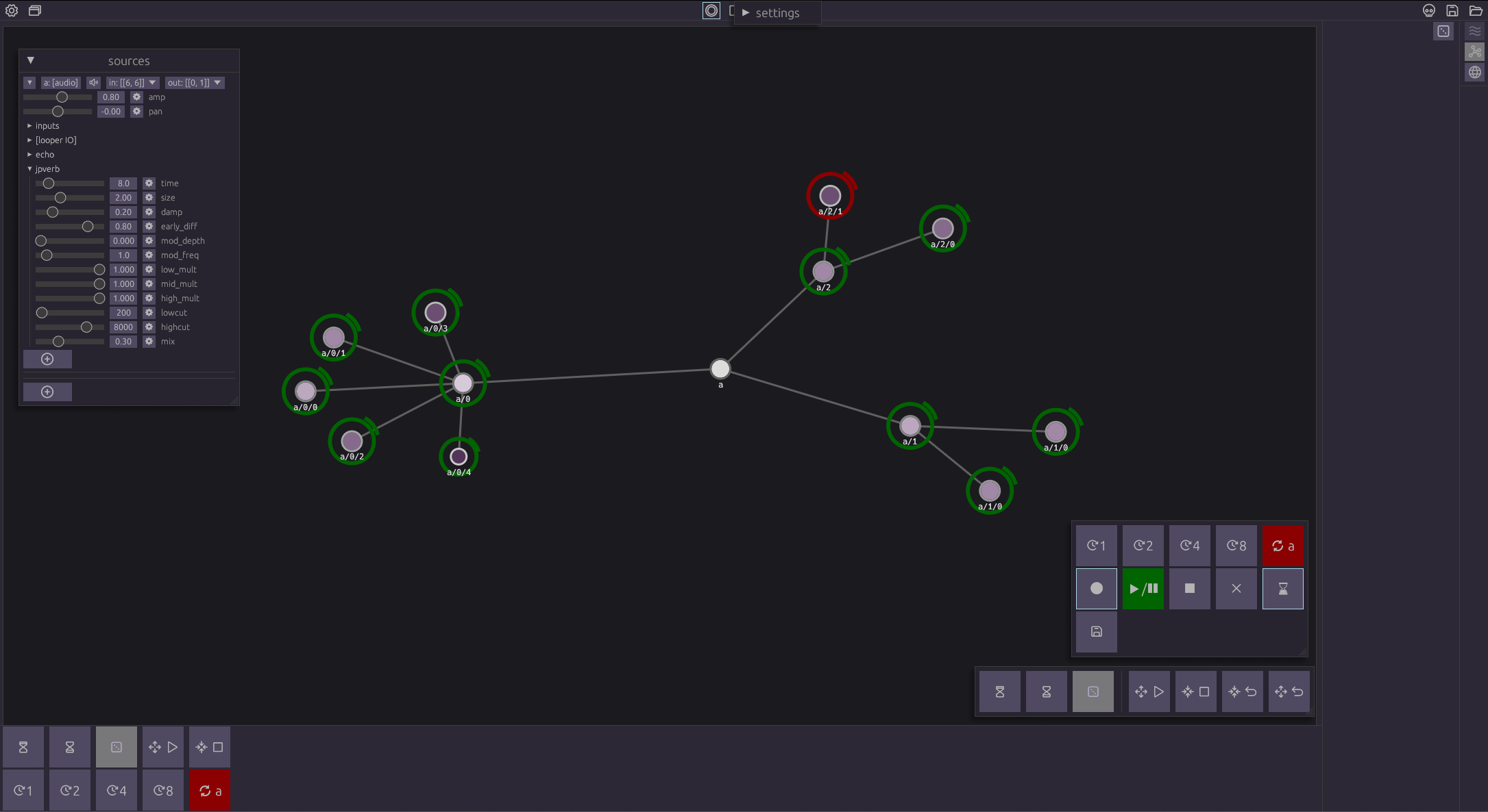 - audio effects and dsp chains pre/post looper - with FAUST based audio effects featuring many presets (reverbs, delays, flangers, distortion, .. etc)
